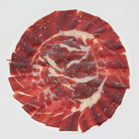 - Der Pata Negra Schinken aus Futtermast 50% iberische Rasse „11 TESOROS IBÉRICOS“ wird aus einer minuziösen Auswahl iberischer Schweine hergestellt die in einem Mastgebiet mit natürlichem Futter gefüttert werden. Nach einem Prozess der Reifung von 42 Monaten, ergibt sich ein wunderbares Endprodukt. Der Schinken ist durch seine feine Textur, unverwechselbares Aroma, sowie intensiven Geschmack gekennzeichnet und hinterlässt eine Gefühl der Wärme im Gaumen.