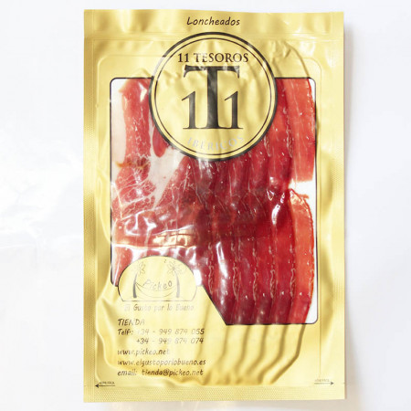 - Il Prosciutto(Jamon) Pata Negra Iberico Bellota 75% Razza Iberica "11 TESOROS IBÉRICOS" viene prodotto a partire da una minuziosa selezione di maiali Iberici allevati allo stato brado nei boschi dell'Extremadura che si nutrono di ghiande. Da questi attraverso de un processo di lavorazione che mediamente dura 42 mesi si ottiene una prelibatezza spettacolare. Prodotto caratteristico per la sua consistenza molto fine, aroma inconfondibile, e dall sapore intenso al palato.