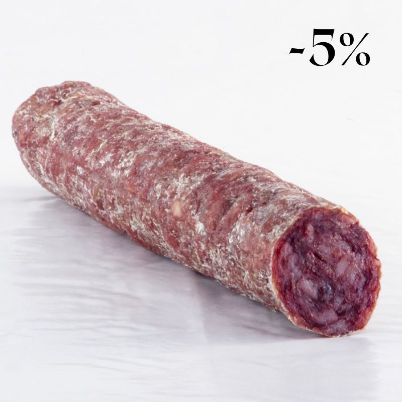 - Prodotto lavorato con carne magra di maiale iberico, condito e insaccato in budello naturale, si ottiene dopo una maturazione in essiccatori naturali.